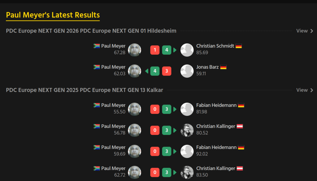 Ja, seit 2025 ist er auf Turnieren der Next GEN anzutreffen. Seine Ergebnisse sind kompakt bei Mastercaller nachzusehen. Sonst auch bei Dartconnect, wenn du nach den einzelnen Turnieren schaust.