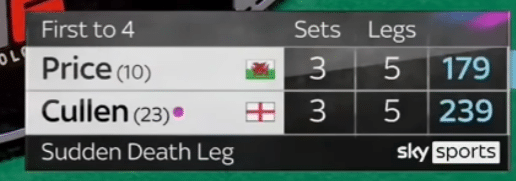 Wann ein Gleichstand herrscht, kommt also auf das Turnier und das Format an. In einem klassischen Best of 11 Legs ist das 5-5 in Legs der Gleichstand. Das ist dann einfach das letzte Leg, der Decider. Als Sudden Death Leg wird das eigentlich nicht bezeichnet.