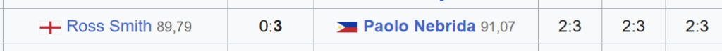 Hier wäre ich daher mit dem Begriff „Whitewash“ vorsichtig. Da würde ich weiter bei einer Niederlage ohne Leggewinn bleiben, um erst dann von einem Whitewash zu sprechen. Auch das kommt vor, also ein 9-0 in den Legs.
